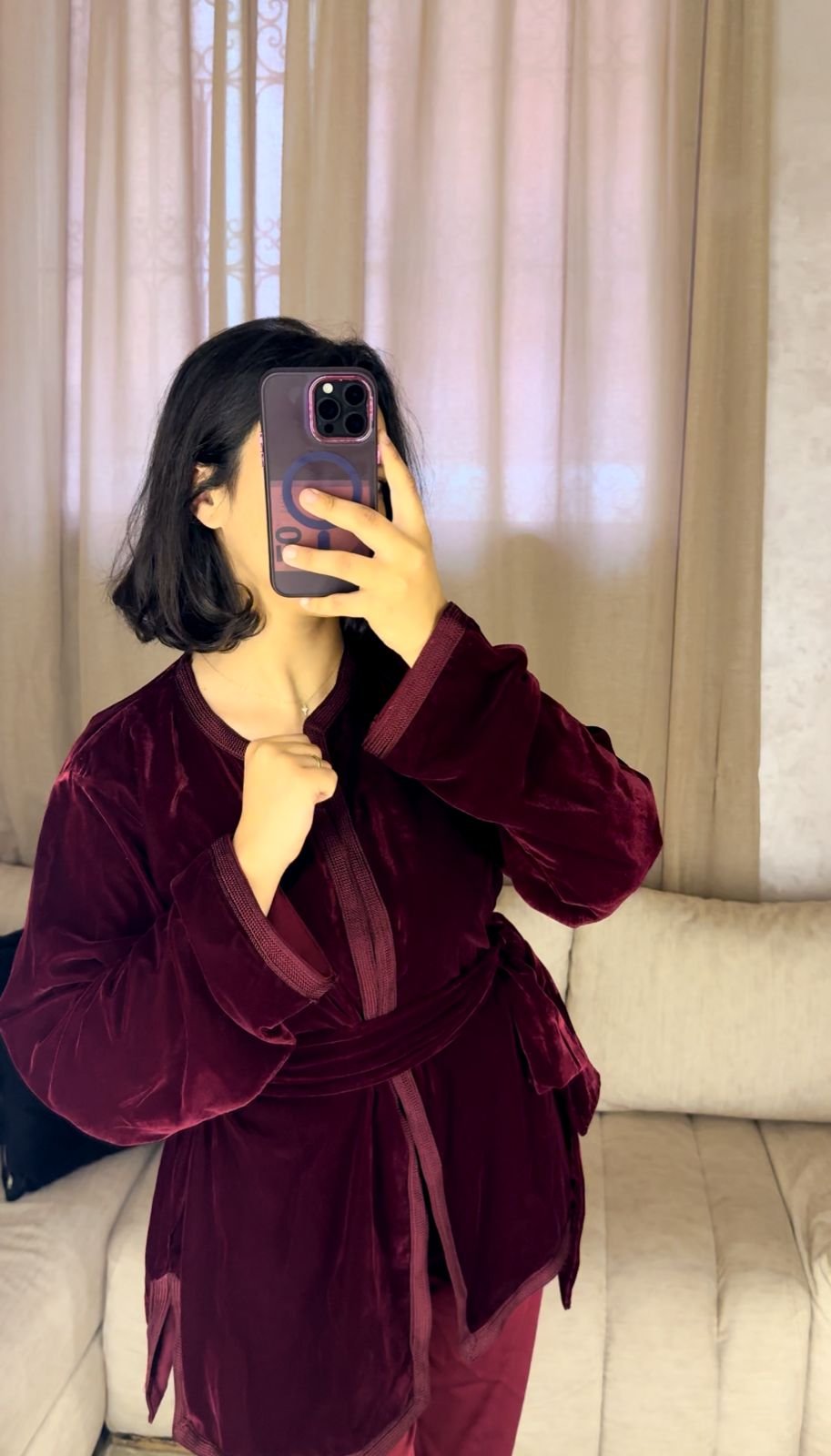 Ensemble Kimono en Velours – Grenat Profond