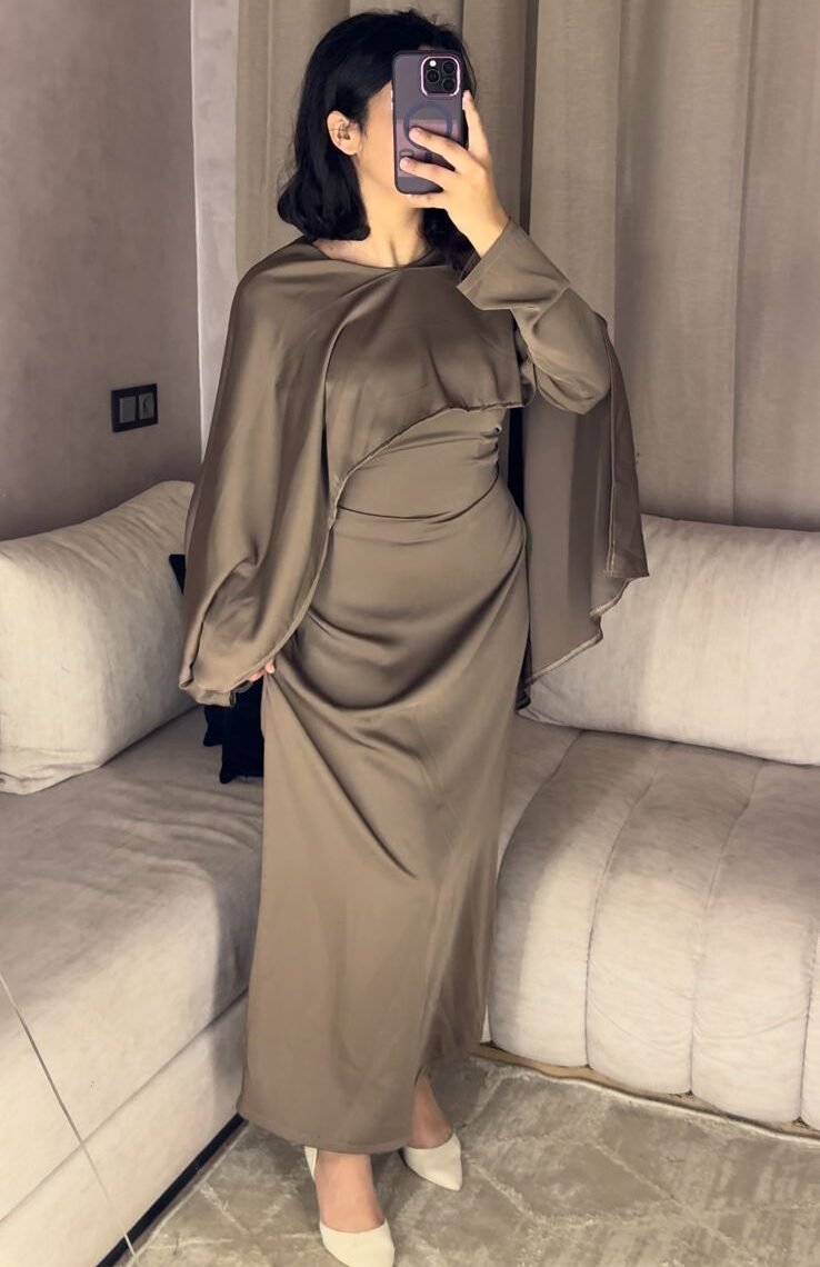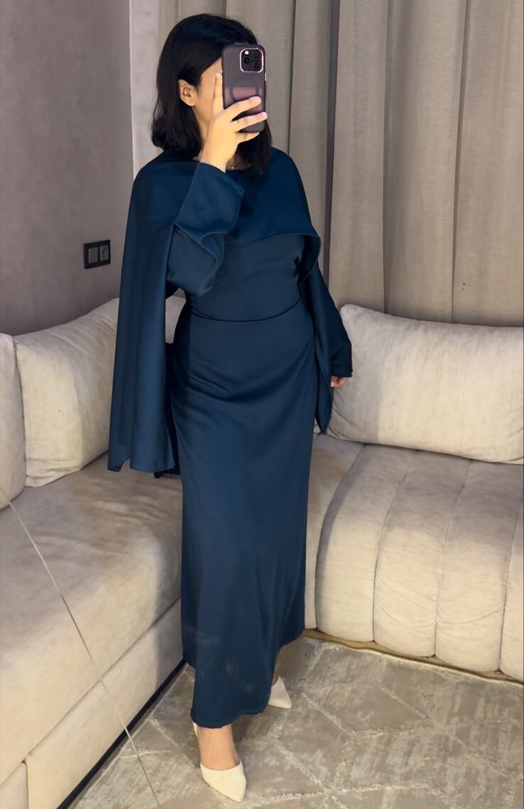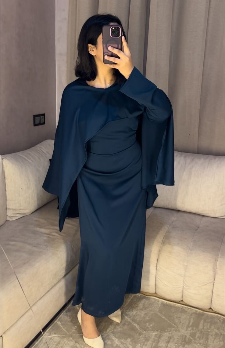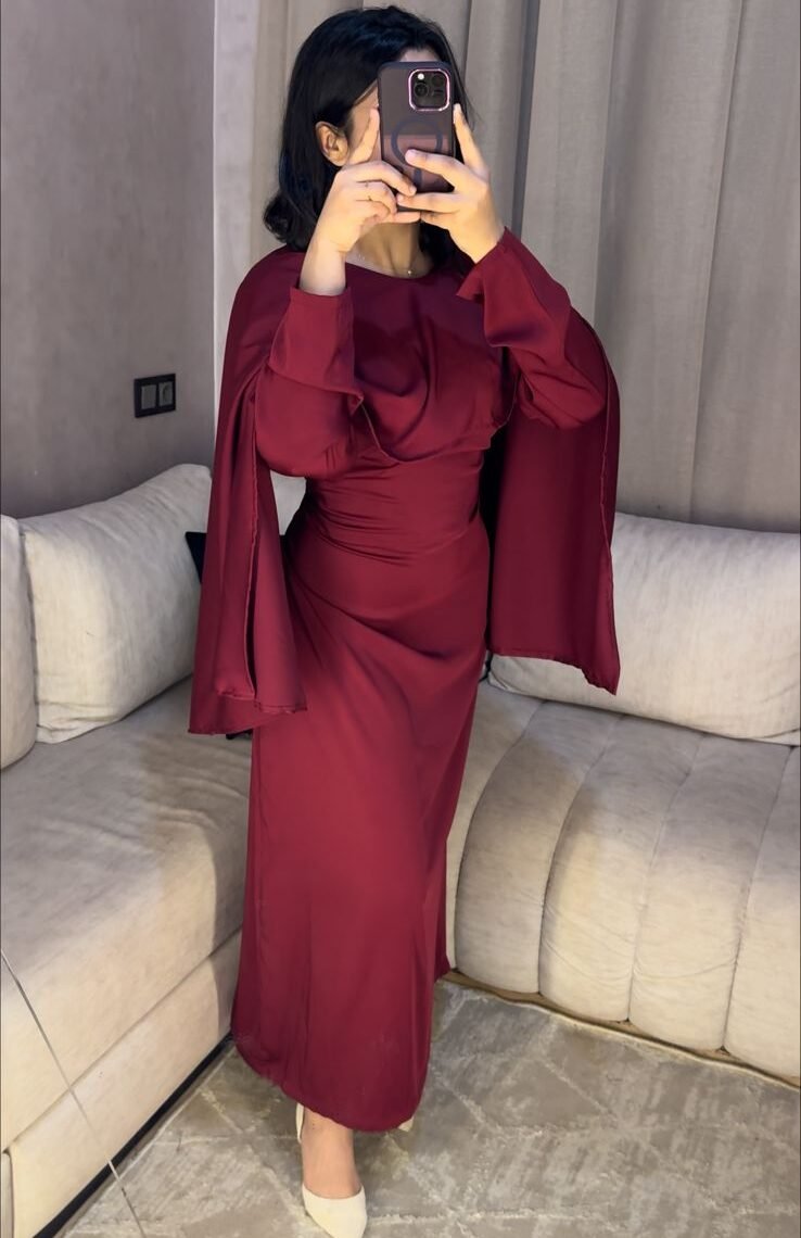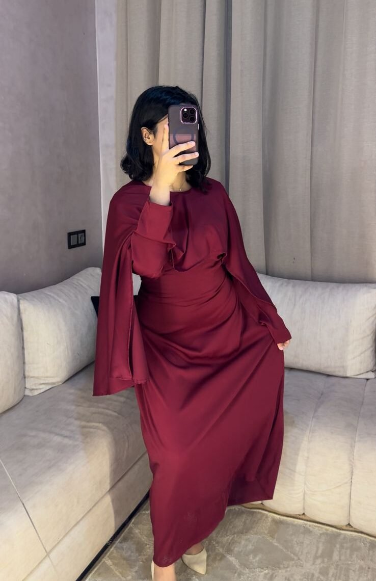 Robe longue au tombé fluide et raffiné, conçue pour une allure chic et modeste. Ses manches légères style cape apportent une touche moderne et féminine, idéale pour vos occasions ou looks élégants du quotidien.